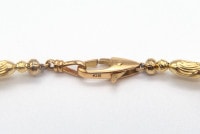 シルクを思わせるような美しいヘアラインテクスチャーが施されたパーツやカット入りパーツとのバランスが抜群のネックレス。ボリュームの割にとても軽量です。 イエローゴールド一色でこれだけの表情とラグジュアリー感を表現しているのはさすがです。そしてイタリア職人の丁寧な手仕事を感じていただけることでしょう。 長くお使いいただける一品です。パーティーにはもちろん、ちょっとしたお出かけにも素敵です。
