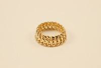 6.5mmと幅があるのに、鏡面部分の模様に品があり、男性・女性問わず着けやすいデザインです。とても滑らかで、指なじみのいいチェーンリングです。幅があるため、普段のサイズより1号くらい大きめがおススメです。