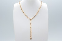 女問わずお使いいただけるシンプルでスタイリッシュなチェーンネックレス。イエローゴールドが胸元を華やかにしてくれます。ボリュームがあるのに軽量で快適な装着感。金具がデザインに馴染んでいるため、Yスタイルにするのもお洒落です。同デザインのブレスレットと繋げて、68センチのロングネックレスにすることも出来ます。