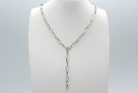 ダイヤ型の大小のデザインパーツが組み合わさったプラチナのチェーンブレスレット。ボリュームがあるのに軽量で快適な装着感。 スタイリッシュでありながらエレガントさも兼ね備え、幅広いスタイルにマッチします。 同デザインの50センチのネックレスと繋げて、ロングにするのもオススメ。コンバーチブルジュエリーとしても楽しめます。